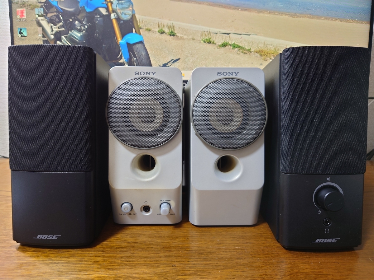 これまでのSONYと比べると一回り大きくて重量感もありますが、パソコンの横に置いた感じは違和感ありません。音も筐体が大きくなった分迫力が出たような気もしますが、私の耳と聞き方(集合住宅なので大音量はご法度)では正直差はわかりません。