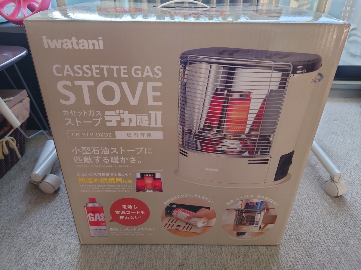そして、こちらの思惑通りの場所に落ち着いてくれないロクには、ある程度部屋全体を暖められるものが必要だと考えて行きついたのが、今回購入したカセットボンベを燃料とするストーブなのです。