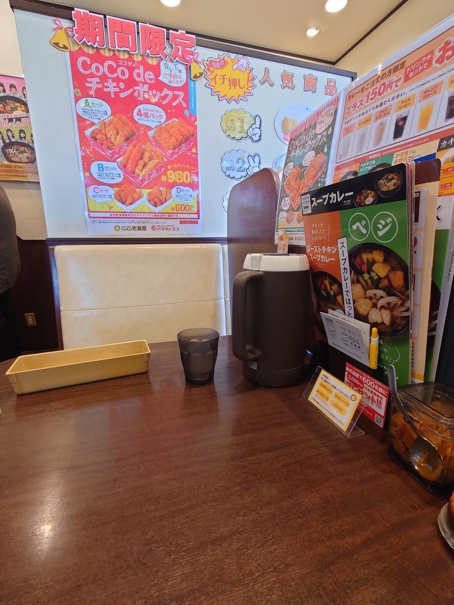 CoCo壱番屋は今スープカレー推しらしく、周りのお客さんにも頼んでいる人が多かったですが初志貫徹して、ロースカツカレーのご飯普通盛り、3辛を注文しました。