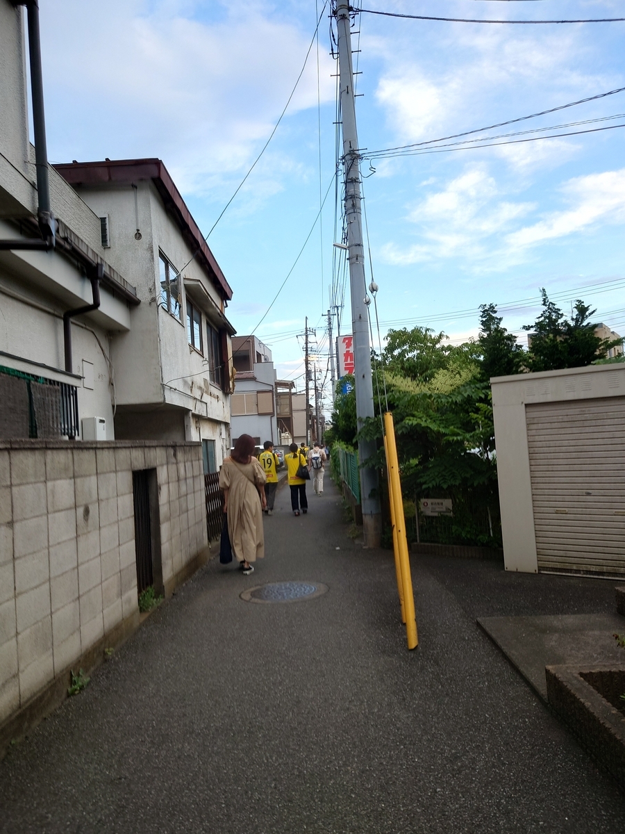 通称レイソル通りは、黄色のレイソルサポーターに混じってライトグリーンのベルマーレサポーターも目立ちます。土曜日の夜の試合ですから、湘南から遠征して来ている人も多いのでしょう。そもそも湘南地区から柏までは意外と便利で、上野東京ライン・常磐線等を使って、品川か上野の一回乗り換えで最速1時間40分程で来ることができます。