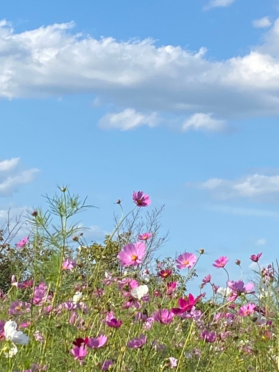 ここからまた印西市に戻り、印西牧の原駅そばにある牧の原公園のコスモスの丘に寄って帰る事にしました。前週長野のコスモス街道が満開でしたので、千葉でももう見頃かなと思ったのですが、予想通り満開のコスモスが迎えてくれました。私は花には全く詳しくないですが、春の桜、秋のコスモスは大好きなのです。