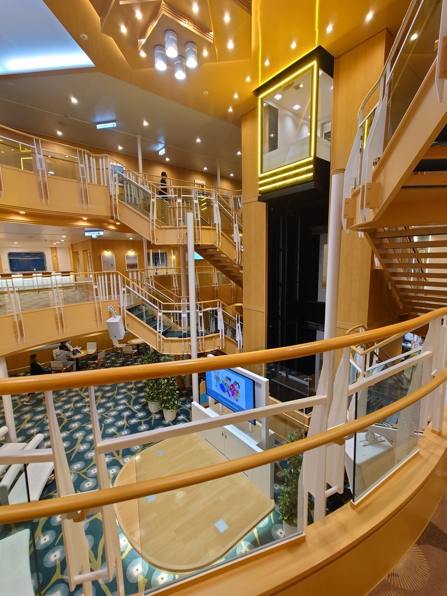 翌日は快晴で気持ちの良いクルーズ日和だったのですが、風が強いためにデッキへの出入りは禁止される時間帯も多く、確かに夜寝ている時も揺れは感じました。