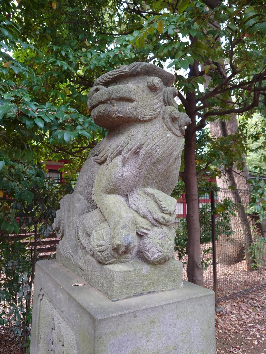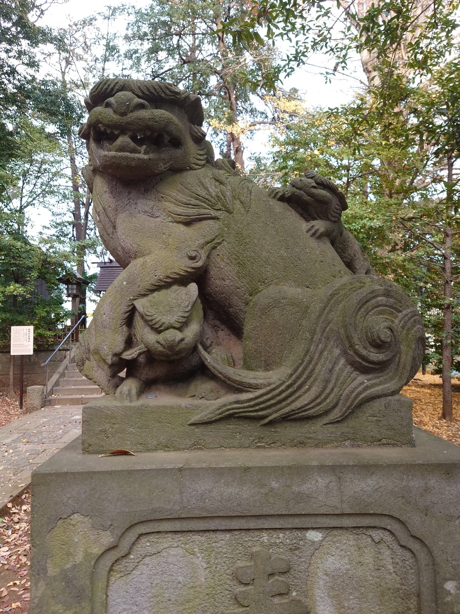 本殿の隣には世田谷招魂神社という日露戦争、太平洋戦争の戦没者を御祀りする神社がありましたが、ここの狛犬には子供がじゃれついている様子が彫られていて、こんな狛犬は初めて見ました。