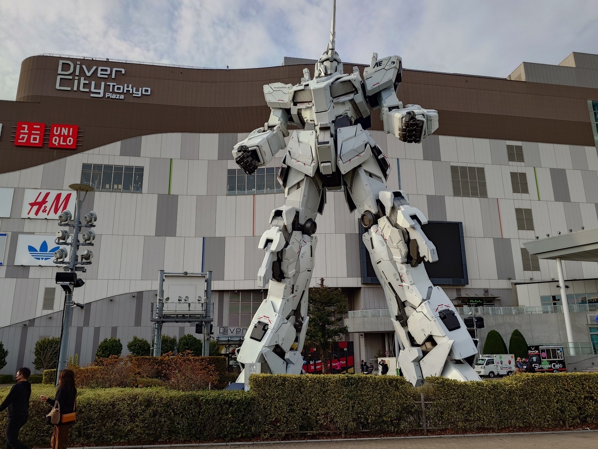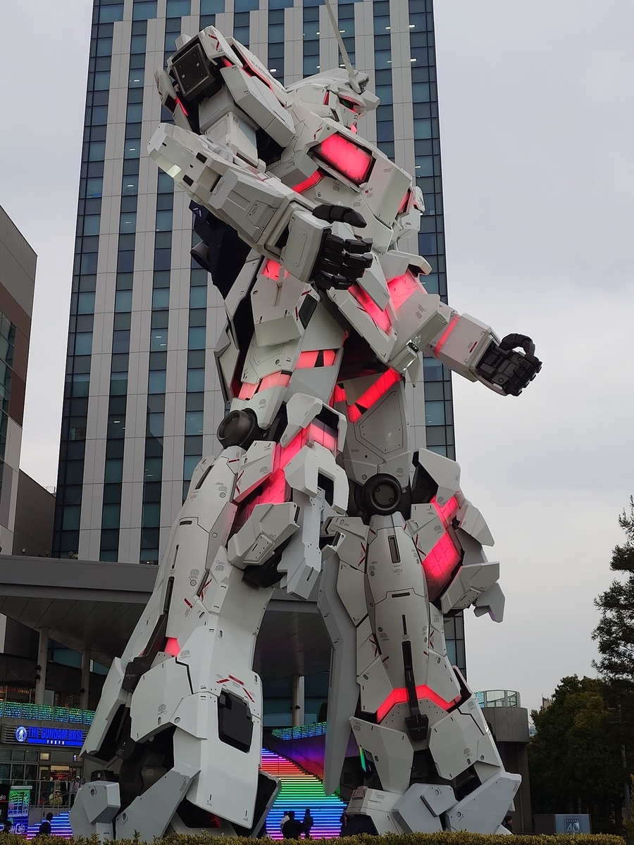 外に出てみるとガンダムの巨大な像があって、ここにも外国人観光客が沢山集まっていました。私も現物を見るのはこれが初めてでしたから迫力に圧倒されました。ガンダムに疎い私は知りませんでしたが、これはユニコーンガンダムというタイプで、横浜のガンダムファクトリーにあったのが初代?らしいです。確かにあとで見比べるとビジュアルは全然違いますね。