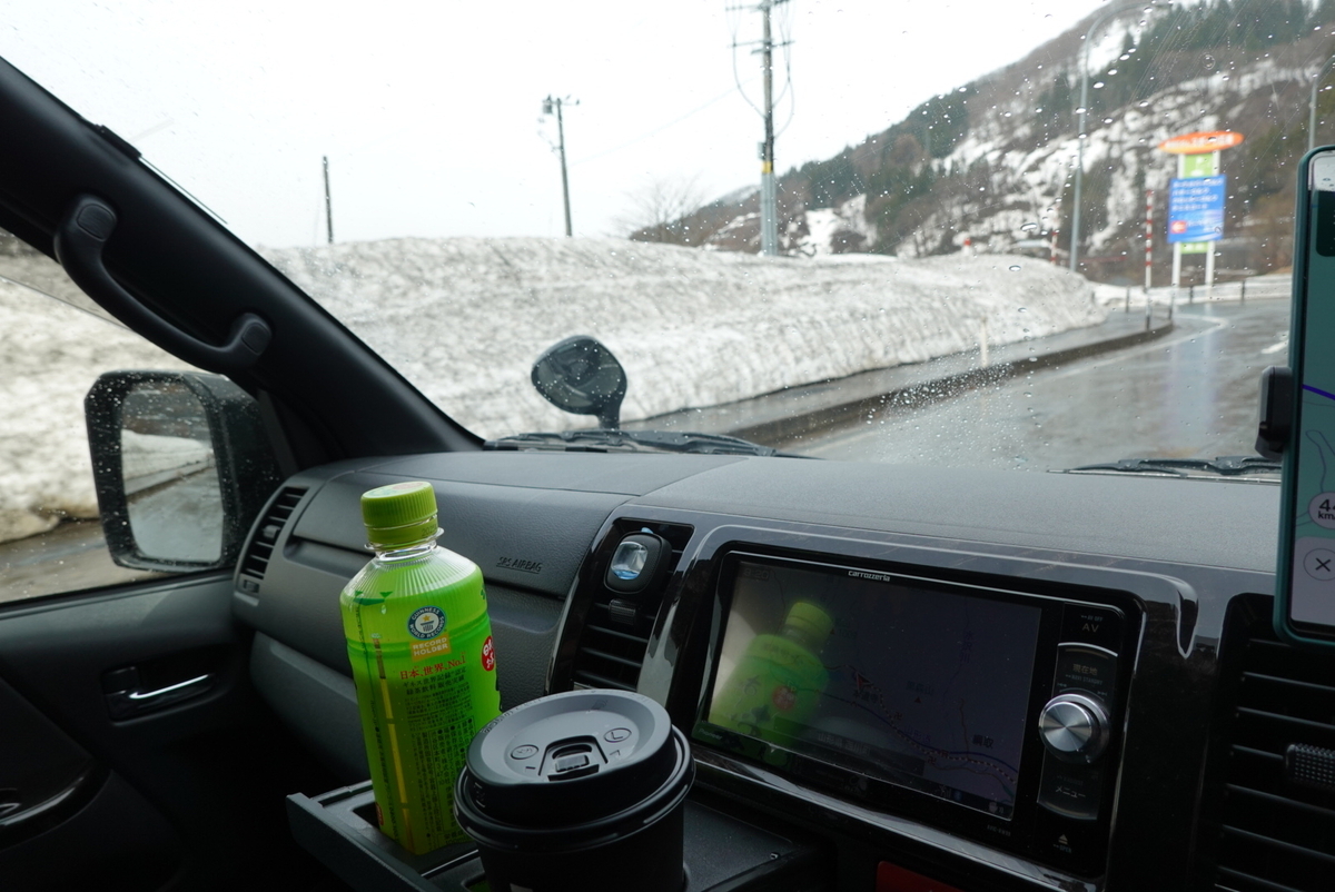 霞城公園を出て、次は鶴岡市に向かったのですが、途中の月山道路はまだまだ冬のたたずまいで、道路凍結こそありませんでしたが、地元車の速いペースに付いていくのに緊張しました。今年は北海道にはいかないのでノーマルタイヤに戻そうかなとも思っていたのですが、スタッドレスのままにしておいて良かったです。