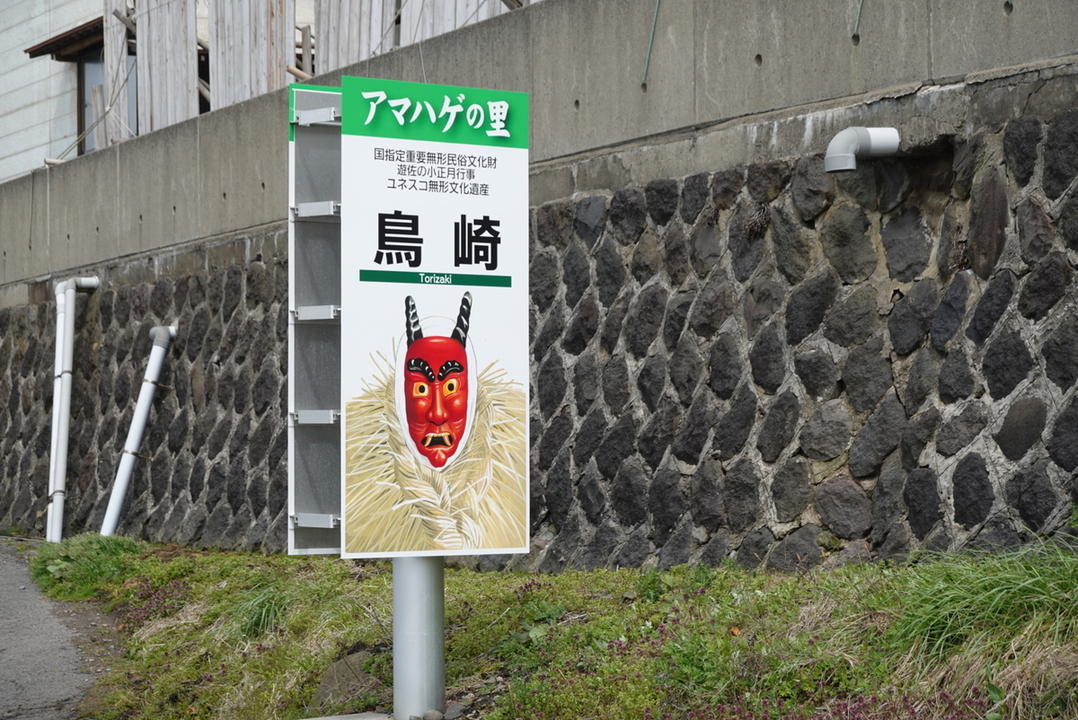 途中の遊佐町鳥崎というところには写真の「アマハゲ」という看板があり、