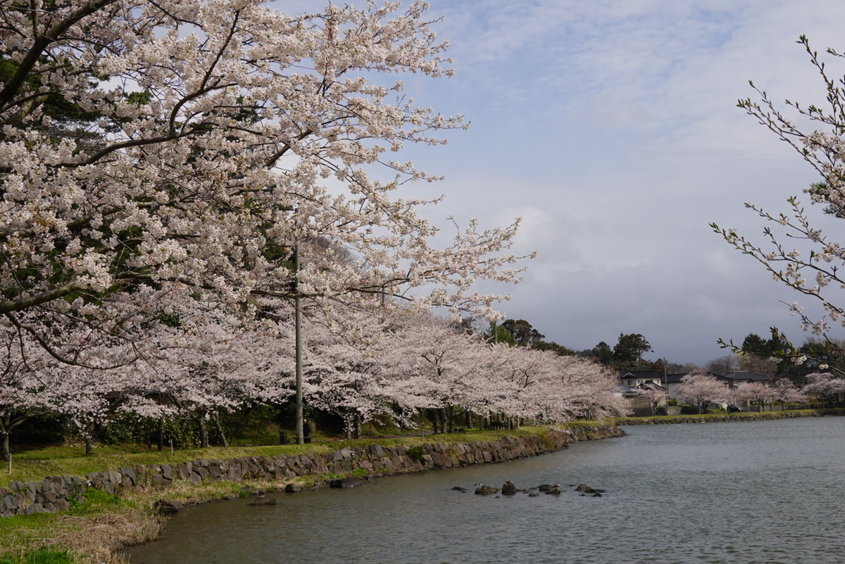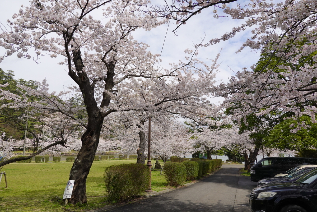 勢至公園は観音潟という大きな池の周りに整備された公園で、周囲の桜並木はなかなか見事でした。ここは秋田県で最初に咲くソメイヨシノらしく、地元ナンバーのクルマが次々と立ち寄っていました。もう少し雲が晴れれば遠景に雪を頂いた鳥海山が見えるらしいのですが。