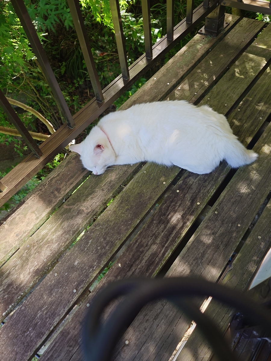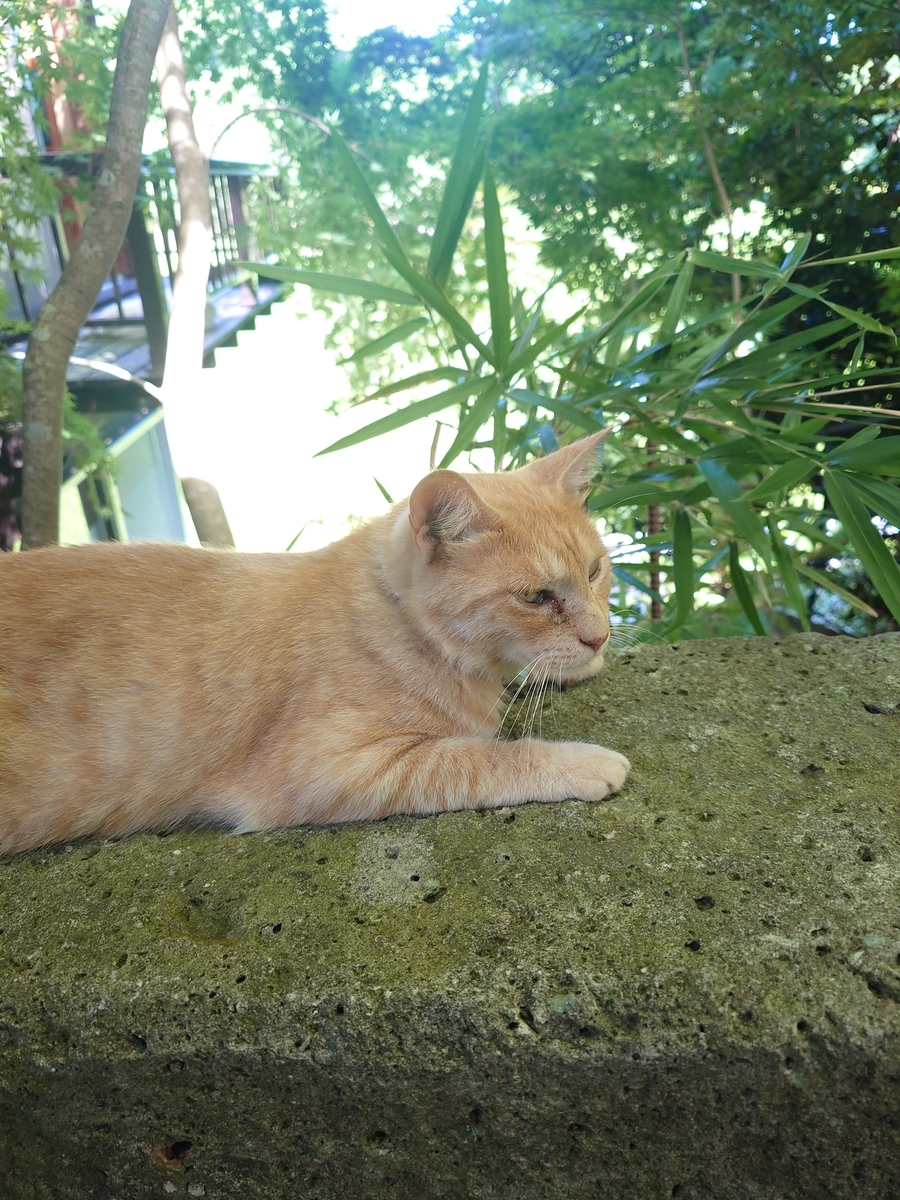 展示物がある本館の屋内でも寛ぐ猫たちがいて、猫好きにはとてもお勧めの美術館です。この日は平日とあって離れの座敷は我々夫婦がほぼ独占状態で、縁側でマグロ状態となって寝ている猫を撫で放題でしたが、とても人懐っこい猫たちでその間ずっとグルグル言っていました。